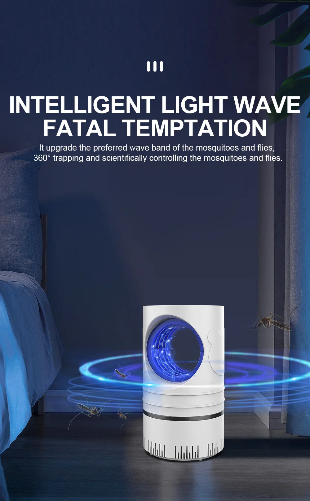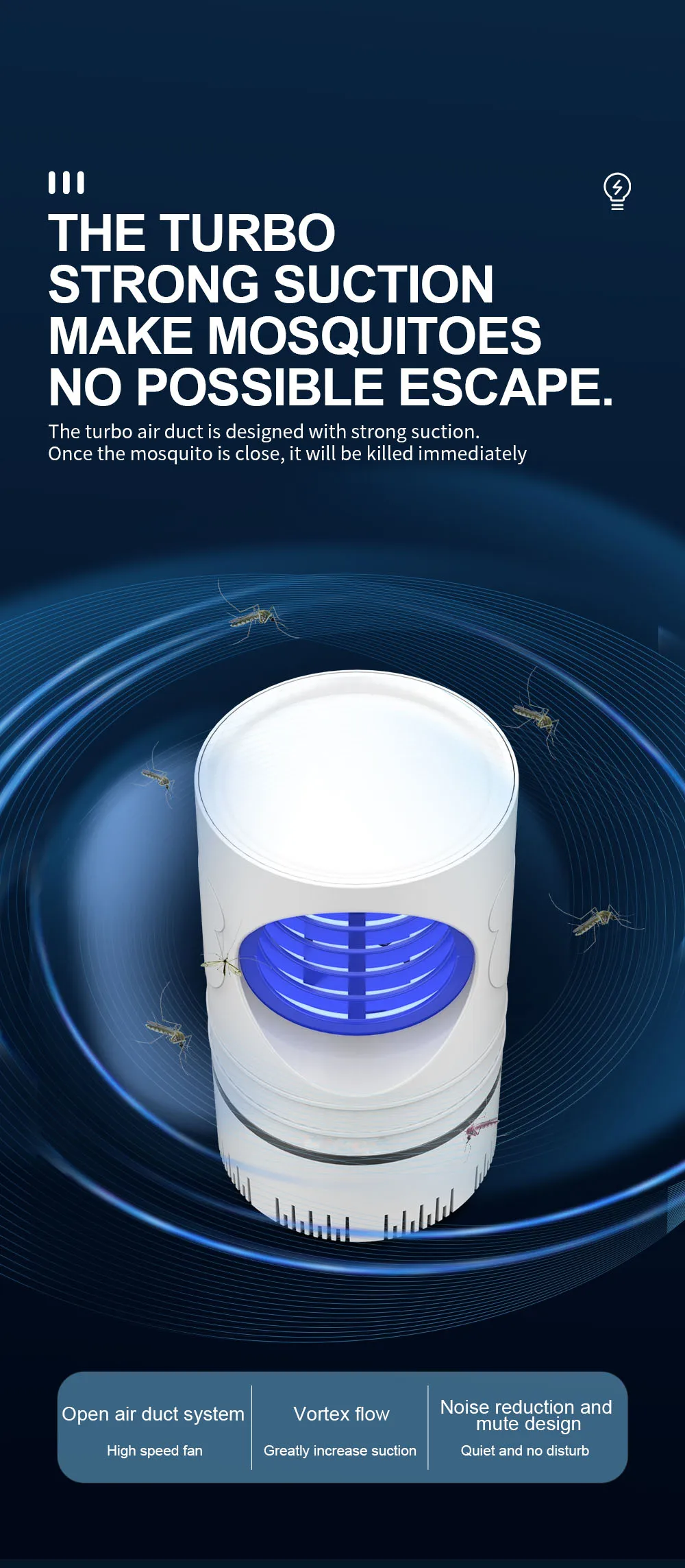 ✅Centrifugal pressure. Prevents escape:Once the mosquito is sucked into the trap grid, it is difficult to escape the strong vortex generated by the fan, which has been pressed into the bottom of the mosquito disc by the cyclone, making it dehydrated and air-dried to death.