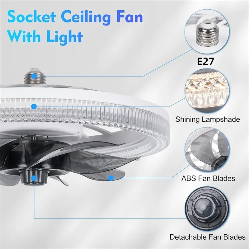 Ceiling Fans with Lights, Socket Fan Light with Remote, Dimmable 3000K-6500K ,Socket Modern Flush Mount Low Profile Ceiling Fan